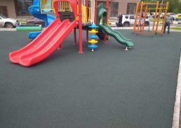 В рамках работ осуществлено устройство специального безопасного покрытия игровой площадки. Также уложен второй слой асфальта, выполнена разметка парковки.