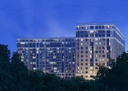 Компания ООО «Атлантик» построила в городе Москве жилой комплекс «Прайм Тайм», который расположен в Хорошевском районе. Первая очередь состоит из одного жилого монолитного здания в форме буквы «Г» высотой 15 этажей и состоящего из 9 секций. Дом выполнен в стиле неоклассики. |